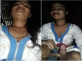 A college girl from Nagpur, Munni, gives a blow job to a much experienced man outside.