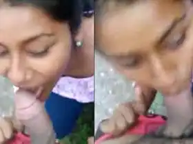 Pretty Indian woman sucks her boyfriend’s penis outdoors