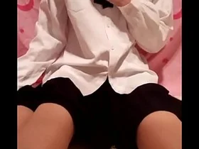 Famous Chinese cosplayer schoolgirl Xiaoyunai shows her tits and masturbates with a dildo