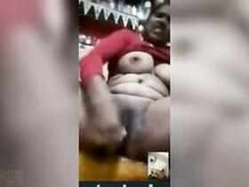 Young Indian man masturbates while watching his curvaceous and horny bhabhi to masturbate on a video call.