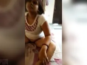 Beautiful wife from India strips and twittingly stimulates her nipples and clitoris in an adult film.