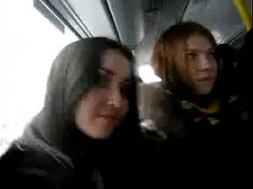 Russian girls Sheikha Helter-Skelter stunt men strangers at the bottom of the bus