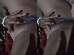Exclusive Desi wife from the village gets off with her fingers and pussy licking