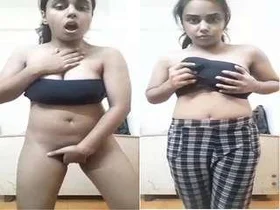 Sexy Indian girl undresses, fingeresses herself and washes up.