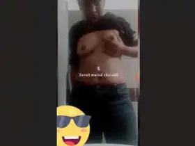 A girl of Indian descent sucks and jerks her big bouncing boobs and rubs her black pussy.