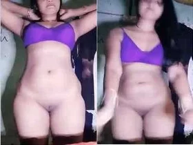 Hot amateur girl from Sri Lanka showing off her big boobs and dancing provocative dance moves while she masturbates.