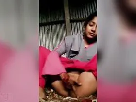 An Indian girl pleasuring herself by rubbing her clitoris.