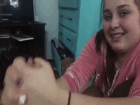 Naughty girlfriend gives a handjob to her boyfriend in front of him