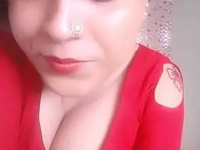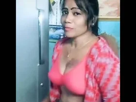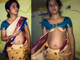 Sapna bhabhi flaunts her big boobies while removing her orange saari