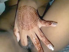 Horny girl fingering her juicy pussy in mehendi hand