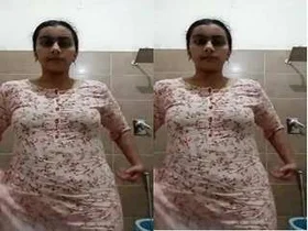 Exclusive video of a horny Bhabhi stripping and flaunting her big tits