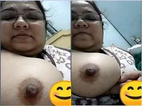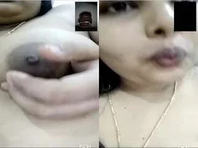 Exclusive Horny Mallu Aunty Sowing Her Boobs on Video Call