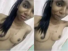 A horny Bengali teen flaunts her big cans in a self takings note.