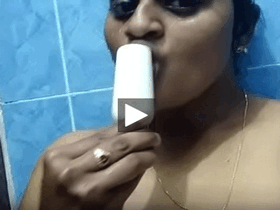 horny vanitha aunt showing big tits and shaved pussy sex using red candle