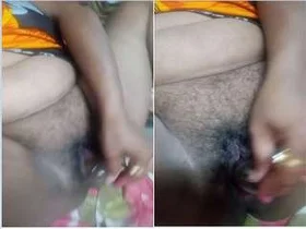 MMS video of a horny girl masturbating with a bottle and using her fingers