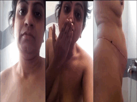 A mature and still very sexual Indian woman shows her bare chest and shaved vagina.