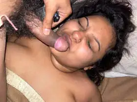 Young Indian woman gives blow job to her lover in a hotel room