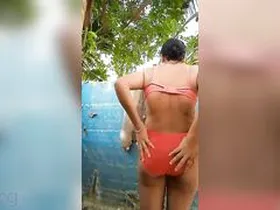 Hot wife strips in outdoor bath scene in MMS video