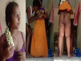 The wife of a desi hillbilly undresses to reveal her large breasts and unshaven private part in an adult film.