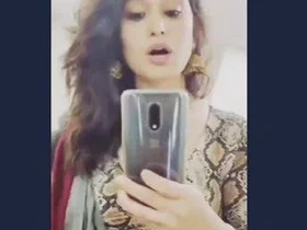 Married Indian woman from Mumbai shows her beautiful breasts and belly in a solo play.