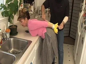 Married housewife with small booby gets fucked by her husband on the kitchen stove.