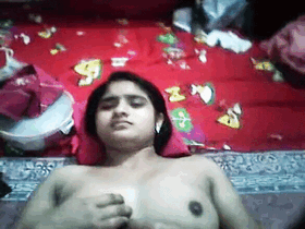 A busty Assamese housewife performs a naked show for her lover