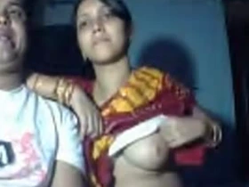 Desi Indian beauty with huge tits being fondled by her boyfriend
