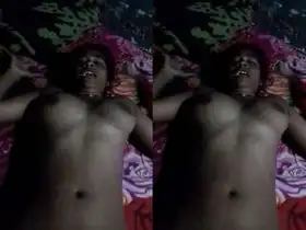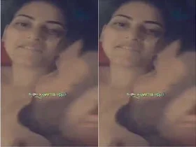 A beautiful Bengali woman undresses and playfully caresses her big breasts.