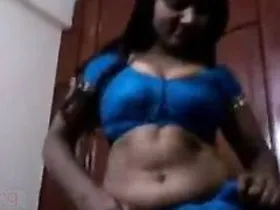 Married aunt in a sari, exposing her large breasts and her belly button.