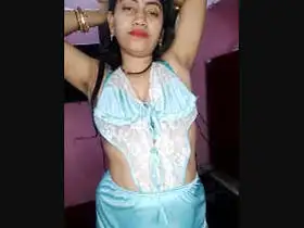 Pretty Indian woman with large breasts exposing herself to her husband in different bras.