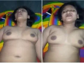 Desi wife with dark hair enjoys solo play and records her husband