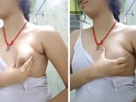 Hot Indian chick showing her big boobs and fingering herself.