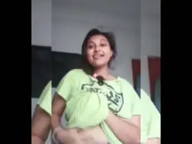 Indian girl playing with her big tits
