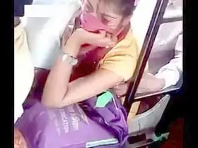 An Indian girl gets her breasts squished on the crowded bus and she likes it a lot.