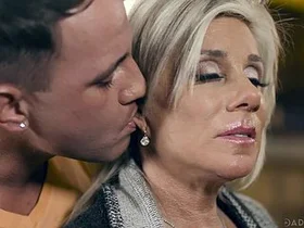 A mature woman seduces a young man with her sensual moves