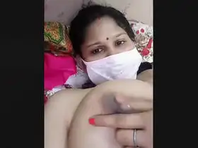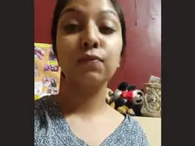 Married Indian woman from Mumbai shows her beautiful breasts and belly in a solo play.
