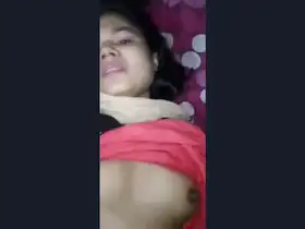 Beautiful Indian woman shares her unspoiled clay and large breasts in an MMS.
