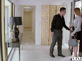 Another folded secretary Desiree gives a great blowjob next to the VIP brush