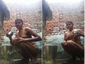 Outdoor bath in the rain: A dehati paddler's nude selfie session