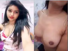 Cute Desi indian girl boobs and pussy live show for boyfriend selfie video