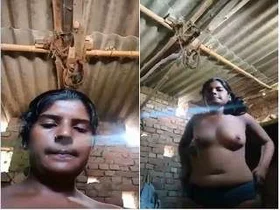 Pretty Indian girl showing off her big breasts and vagina in MMS video