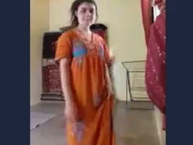 A beautiful young Indian woman shows her body to a man in a provocative manner.