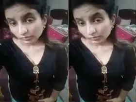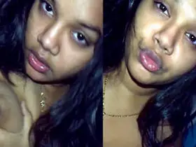 A horny Bengali teen flaunts her big cans in a self takings note.