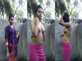 Beautiful Bangladeshi village girl shows her big breast in a self-taken photo.