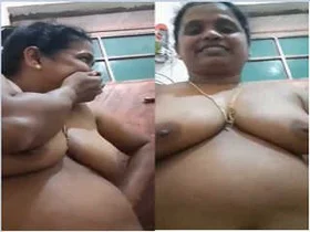 A hot Indian aunty showing her big cans in a housewives porn video