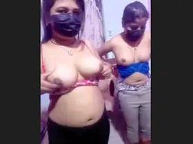 Beautiful Indian woman exposes her breasts during a video call with her lover and her aunt.