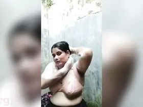 Married Bangladeshi house wife taking naked shower in outdoor bath in Bengali XXX video.