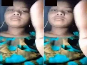 Beautiful teen from India shows her big bosom while taking a shower outside.