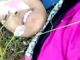 Outdoor scenery with a hairy and bushy private part with an Indian girl