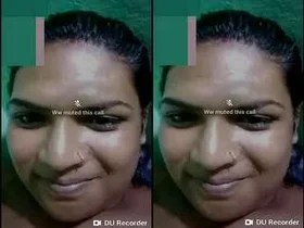 A beautiful Indian woman exposes her breasts and vagina during a video call.